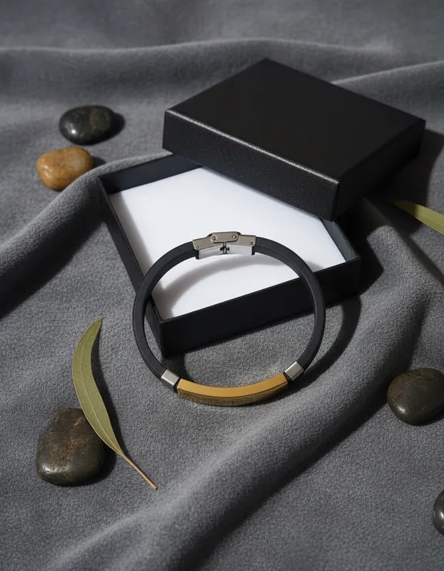 Pulsera Cristiana en Cuero y Placa Negra, Grabado con Padre Nuestro